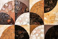 Dit moderne kunstwerk combineert abstracte vormen met een rijk palet van aardetinten. De geometrische patronen en gelaagde texturen zorgen voor een intrigerend visueel spel dat perfect past in een eigentijdse ruimte. Ideaal om een minimalistisch interieur tot leven te brengen of als eyecatcher in een modern kantoor. De warme kleuren creëren een uitnodigende sfeer, terwijl de abstracte vormen een gevoel van diepte en beweging toevoegen. Geschikt voor liefhebbers van moderne en abstracte kunst, dit stuk biedt een verfijnde esthetiek die inspireert en fascineert.