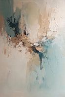 Dit abstracte kunstwerk brengt een serene sfeer met een harmonieuze combinatie van zachte kleuren zoals beige, turquoise en wit, met accenten van bruin en goud. De rijke texturen en het spel van licht en schaduw geven het ontwerp diepte en karakter. Deze schildering is perfect voor het creëren van een rustige, verfijnde uitstraling in zowel woon- als slaapruimtes. De zachte kleurovergangen en subtiele contrasten maken dit werk een veelzijdige keuze voor moderne interieurs. Ideaal voor iedereen die op zoek is naar een kunstwerk dat elegantie en rust uitstraalt, zonder te overweldigen.