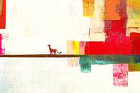 Een prachtig abstract kunstwerk met een speelse cheeta als middelpunt. Dit kleurrijke ontwerp combineert de schoonheid van een dier met een unieke moderne stijl. De levendige tinten rood, geel, groen en oranje zorgen voor een opvallende uitstraling, terwijl de abstracte achtergrond een speels en dynamisch gevoel toevoegt. Perfect voor wie zijn interieur wil verrijken met een eigentijdse en unieke wanddecoratie. Ideaal voor zowel woon- als werkruimtes en een geweldige aanvulling op elk modern interieur.