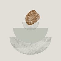 Moderne, hedendaagse en minimalistische kunst met geometrische ronde vormen en texturen in zachte pasteltinten groen, beige en bruin.
