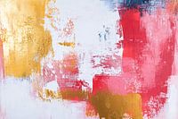 Dit unieke abstracte kunstwerk valt op door zijn dynamische combinatie van levendige kleuren en gedurfde texturen. De opvallende tinten goud, wit en rood mengen zich op een speelse en expressieve manier, waardoor het schilderij een gevoel van energie en beweging overbrengt. Het gebruik van goud voegt een vleugje luxe en elegantie toe, terwijl de rood- en rozetinten warmte en passie uitstralen. Deze prachtige balans tussen de kleuren maakt het een perfecte toevoeging aan elke moderne woonkamer of eetkamer. Het ontwerp is veelzijdig en kan dienen als een opvallend middelpunt of een subtiele aanvulling op een eigentijdse inrichting. Een ideaal kunstwerk voor degenen die houden van moderne abstracte kunst met een energieke uitstraling.