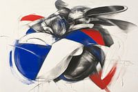 Dit abstracte kunstwerk is een krachtige weergave van beweging en contrast. Met een speelse mix van primaire kleuren zoals blauw en rood, gecombineerd met dynamische lijnen en monochrome accenten, brengt het een unieke energie in elke ruimte. Het ontwerp is perfect voor moderne interieurs en voegt een eigentijdse en expressieve…