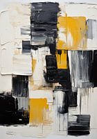 Schilderij: abstract schilderij in zwart, wit en geel.