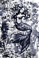 Over ‘Abstract kunstwerk zeemeermin in blauw en wit’ van Emiel de Lange