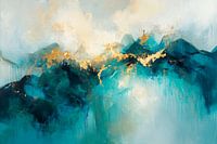 Een stralend samenspel van diepblauwe en gouden tinten brengt een gevoel van sublieme rust en dynamische beweging over. De zachte heuvels en lichtgevende accenten creëren een harmonieuze sfeer die zowel inspirerend als rustgevend is. Dit kunstwerk is ideaal voor de woonkamer en verandert de kamer in een oase van ontspanning en creativiteit.