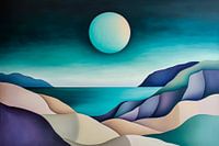 Koop dit landschapskunstwerk Abstract kustlandschap met maan van Poster Art Shop als print op canvas, aluminium dibond, (ingelijste) fotoprint, behang en ArtFrame. Voor jou op maat geprint in Fine-Art kwaliteit.