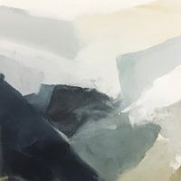 Abstract landschap in aardetinten. Verschillende tinten wit, beige, zwart, blauw en groen maken samen een abstract berglandschap.