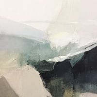 Abstract landschap in aardetinten. Verschillende tinten wit, beige, zwart, blauw en groen maken samen een abstract berglandschap.