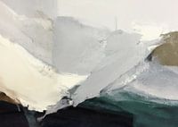 Abstract landschap in aardetinten. Verschillende tinten wit, beige, zwart, blauw en groen maken samen een abstract berglandschap.