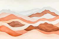 Zachte, golfachtige vormen in warme aardetinten en zachte pasteltinten creëren een rustgevende sfeer. Deze harmonieuze compositie nodigt uit tot dromen en past perfect in een slaapkamer of meditatieve ruimte, waar het rust en inspiratie kan bevorderen. De zachte overgangen zijn bijna als een kalmerende omarming van de natuur.
