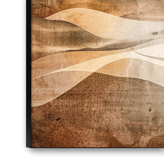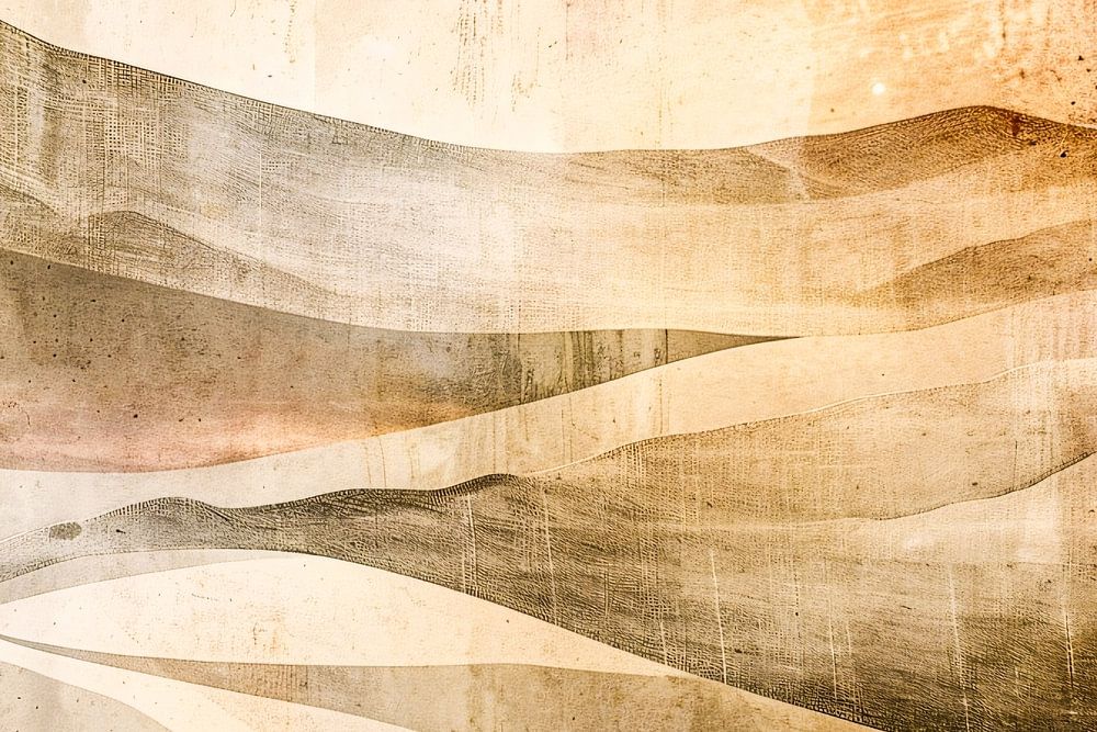 Dit ontwerp is een prachtig abstract landschap dat warme aardetinten combineert met zachte, vloeiende lijnen. De lagen van het ontwerp doen denken aan glooiende bergen of heuvels, terwijl de subtiele textuur een verfijnde, natuurlijke uitstraling geeft. Perfect voor moderne interieurs, het ontwerp straalt rust en sereniteit uit en past goed in ruimtes zoals slaapkamers, kantoren of woonkamers. Het ingetogen kleurenpalet maakt het gemakkelijk te combineren met diverse stijlen en meubels, terwijl de abstracte benadering zorgt voor een artistieke en tijdloze uitstraling.