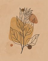 Abstract landschap gemaakt van vijf organische vormen en een lijntekening van een tak met bladeren. Moderne kunst in prachtige aardekleuren, geschikt voor elke kamer en de meeste interieurstijlen.