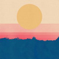 Deze moderne collectie abstracte landschapskunstwerken mengt neonkleuren en pastelkleuren met een minimalistisch ontwerp en gestileerde zonnevormen. Cirkelvormige schijven die de zon of de maan voorstellen vormen een fel contrast met zacht gelaagde horizonlijnen en creëren een gevoel van ruimte, licht en sfeer. De composities maken gebruik van kleurblokken in terracotta, koraalroze, diep marineblauw, beige en kobaltblauw, die gloeiende luchten en abstracte natuurscènes oproepen.