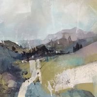Abstract schilderij van een landschap in pastelkleuren. Houd je van natuur, de bergen en buiten zijn? Met dit schilderij haal je het allemaal in huis. Kies zelf het materiaal en de afmeting.