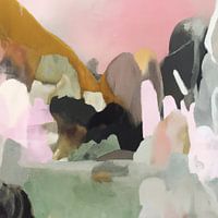 Abstract schilderij: illustratief landschap in pastelkleuren. Dit werk past heel mooi op een neutrale muur (ook / juist op een gekleurde wand!)