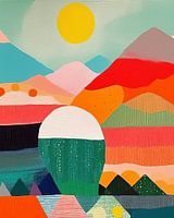 Abstract landschap in voornamelijk pastelkleuren. Vrolijk je muur op met dit speelse werk. Mooi in ieder interieur, in ieder formaat en op elk materiaal!