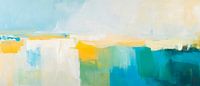 Zachte kleurtonen in een harmonieus samenspel creëren een sfeer van rust en ruimte. De gelaagde blauwtinten en pittige gele nuances nodigen uit om te dromen. Ideaal voor de slaapkamer, waar het een oase van rust creëert, of in de woonkamer om een vleugje elegantie toe te voegen aan gesprekken.