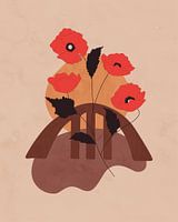Abstract landschap met klaprozen naast een brug van Tanja Udelhofen