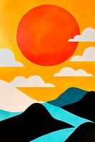 Koop dit landschapskunstwerk Abstract landschap met rode zon van Poster Art Shop als print op canvas, aluminium dibond, (ingelijste) fotoprint, behang en ArtFrame. Voor jou op maat geprint in Fine-Art kwaliteit.