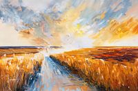 Koop dit landschapskunstwerk Abstract landschap met weg naar horizon van Art & Soul Creations op canvas, aluminium dibond, (ingelijste) fotoprint, behang en ArtFrame, op maat geprint in Fine-Art kwaliteit.