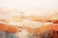 Dit kunstwerk presenteert een abstract landschap dat wordt gekenmerkt door vloeiende lijnen en gedurfde kleuren. De compositie bestaat uit verschillende tinten blauw, groen en aardse kleuren die elkaar overlappen en een gevoel van diepte en beweging creëren. Hoewel het landschap abstract is, kun je elementen zoals lucht, water en land herkennen in de dynamische vormen en kleurvlakken. De texturen en gelaagde vormen nodigen uit tot interpretatie en geven het werk een dromerige, bijna surrealistische sfeer. Dit schilderij is perfect voor wie houdt van moderne kunst en een ruimte wil verfraaien met een uniek en expressief landschap.
