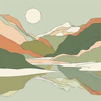 Dit minimalistische kunstwerk toont een abstract landschap in zachte, harmonieuze kleuren. De gebogen lijnen en vlakken stellen bergen, heuvels en valleien voor en creëren een rustgevende en esthetisch aangename sfeer. Dit schilderij is ideaal voor moderne woonkamers of kantoren en brengt een vleugje natuur en rust in elke kamer. Perfect voor liefhebbers van landschap en abstracte kunst.