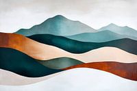 Zachte, golfachtige vormen en harmonieuze aardetinten vormen samen een rustgevend landschap dat doet denken aan verre heuvels en glooiende valleien. De balans van groen en bruin geeft een gevoel van nabijheid tot de natuur en rust. Ideaal voor de slaapkamer, creëert het een ontspannen sfeer die uitnodigt tot droomvakanties.
