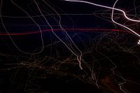 Deze verlichte lijnenspel is ontstaan door de camera te bewegen tijdens een lange sluitertijd van 20 seconde