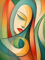 Prachtige, stijlvolle kunst dat zich kenmerkt door minimalistische en abstracte vormen en zachte lente achtige kleuren. De lijnen vloeien moeiteloos samen en creëren een mooie balans tussen vormen, kleuren en textuur. Het kunstwerk straalt rust en sereniteit uit.