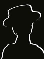 Abstract lijntekening portret vrouw met hoed wit op zwart