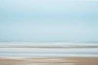 Long exposure bewogen beeld van de zee aan de Italiaanse kust. De beweging geeft een zachte textuur aan de golven, het zand en de lucht met een heerlijke pastel marine blauwe zee en beige zand.
