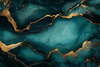 Dit prachtige ontwerp brengt een combinatie van luxe en rust naar iedere ruimte. De rijke teal tinten vloeien harmonieus samen met accenten van goud, waardoor het een gevoel van elegantie en verfijning oproept. De marmerachtige vormen voegen een natuurlijke textuur toe, terwijl de gouden details de compositie naar een hoger niveau tillen en zorgen voor een dynamisch contrast. Dit kunstwerk past perfect in moderne interieurs en voegt een chique uitstraling toe aan elke woonkamer, slaapkamer of eetkamer. Of je nu op zoek bent naar een subtiele eyecatcher of een opvallend decorstuk, dit ontwerp biedt een ideale balans tussen kleur en vorm.