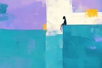 Abstract met bewoner - Abstract schilderij: Modern met mensje.