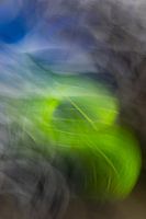 Bij dit beeld heb ik met mijn camera ronddraaiende bewegingen gemaakt. Door de lange sluitertijd ontstonden er fraaie wazige cirkels. Het origineel laat bloemen zien en wat blauwachtige…