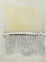 Abstract minimalisme in Japandi stijl in zwart, wit en lichtgeel. Een bijzondere blikvanger voor je interieur! Kies zelf het formaat en materiaal bij dit werk.