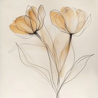 Minimalistische schets van 2 tulpen in zachte aardetinten.