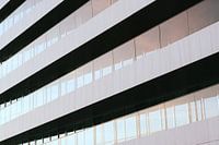 Lijnenspel van een modern zakenlijk kantoor gebouw in de omgeving van de Amsterdamse zuidas. Design of vormgeving voor achtergrond en interieur inrichting van kantoren of bedrijf.