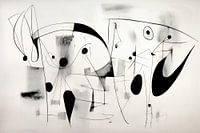 Zwart-wit schilderij, abstract expressionisme. Herinneringen aan emoties door dynamische lijnen en vormen.