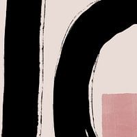 Neutrale, op wabi-sabi geïnspireerde zwarte inktlijnen en roze kleurblokken op een gebroken witte achtergrond.