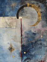 Abstract, modern en mystiek. Een bijzondere blikvanger voor je interieur in blauw met een vleugje rood en goud.