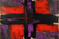 Dit opvallende kunstwerk brengt een moderne en dynamische sfeer in elke ruimte. De krachtige combinatie van rode, zwarte, paarse en oranje tinten, samen met de expressieve lijnen, creëert een visueel intrigerende compositie. Ideaal voor kantooromgevingen en slaapkamers, dit abstracte schilderij voegt een vleugje eigentijdse elegantie…