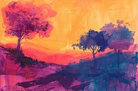 Abstract moderne kunst - Landschap abstract kunstwerk. Hedendaagse Japandi / scandinavische stijl.