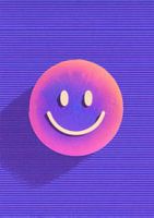 Dit kunstwerk heeft een minimalistische, abstracte smiley op een paarse achtergrond. De op retro geïnspireerde kleurenmix, gecombineerd met neonlichten en glitch-effecten, creëert een opvallende, digitale esthetiek. De ronde vorm, gedurfde contrasten en subtiele schaduwen voegen diepte toe aan het ontwerp, terwijl de levendige kleuren…