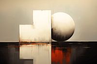 De strakke cirkels, rechthoeken en driehoeken als perfecte geometrische vormen, belichamen een gevoel van orde en precisie. Ze lijken te zweven op het doek in een perfect georkestreerd universum. De vloeiende lijnen tussen deze strakke vormen creëren een gevoel van ritme en harmonie.