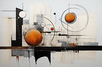 De strakke cirkels, rechthoeken en driehoeken als perfecte geometrische vormen, belichamen een gevoel van orde en precisie. Ze lijken te zweven op het doek in een perfect georkestreerd universum. De vloeiende lijnen tussen deze strakke vormen creëren een gevoel van ritme en harmonie.