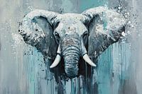 Dit unieke schilderij toont een indrukwekkende afbeelding van een olifant, met brede, majestueuze oren en prominente slagtanden. Het ontwerp is modern en expressief, met een dynamisch gebruik van verfspatten en een prachtige mix van blauw- en grijstinten. De olifant lijkt bijna uit het doek te stappen door de krachtige penseelstreken en gedetailleerde textuur, terwijl de verf druppelt en spettert, wat een extra dimensie geeft aan het werk. Dit schilderij voegt een vleugje wilde natuur toe aan elk interieur en is een perfecte eyecatcher voor in de woonkamer, een kantoorruimte of elke andere ruimte waar een kunstwerk van betekenis gewenst is. Het subtiele maar krachtige kleurgebruik maakt het makkelijk te combineren met verschillende interieurstijlen.