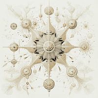 Deze kunst print toont: de natuur, organismen, vormen, bollen, sterren, is abstract en vierkant, heeft een sepia kleur, gaat over de werkelijkheid en de fantasie, is decoratief.