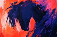 Het silhouet van een majestueus paard komt tot leven in krachtige blauw- en roodtinten. De dynamische kleurencompositie straalt energie en passie uit en betovert de kijker. Dit kunstwerk is ideaal voor een woonkamer, waar het verhalen vertelt en de verbeelding prikkelt.