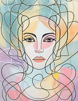 Abstract vrouwenportret in glas en pastel kleuren