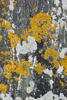 Abstract patroon van kleurige korstmossen op een rots. Korstmossen of lichenen zijn in staat te overleven op extreme standplaatsen. Meerdere soorten bij elkaar vormen kleurige patronen. Een korstmos is een samenlevingsvorm van een schimmel en een alg. Deze combinatie maakt het mogelijk op rotsen te groeien. Korstmossen groeien talrijk op rotsen in een vochtige omgeving en met schone lucht. In Scandinavië zijn de omstandigheden gunstig en vind je de prachtigste combinaties. Zoals deze foto die genomen is langs een fjord in Noorwegen.